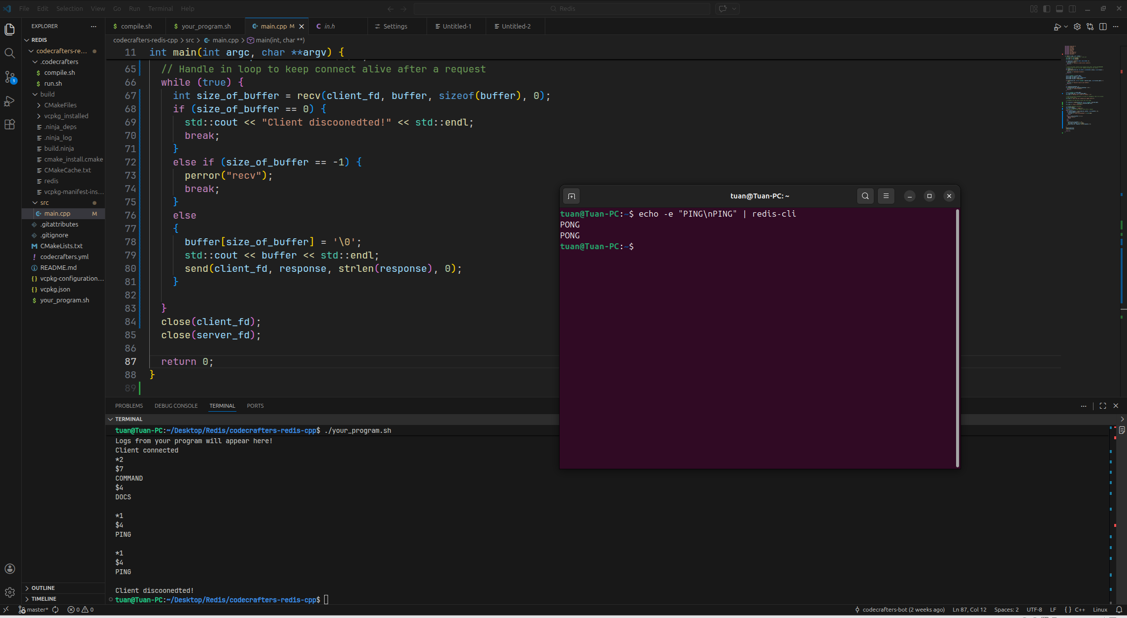 Hiện tại ở bài này dùng while() để đọc dần thông tin có trong kernel buffer, vậy nếu không có while() thì chỉ đọc được “COMMAND DOCS” hay chỉ 1 lệnh “PING” hoặc tệ hơn vậy.